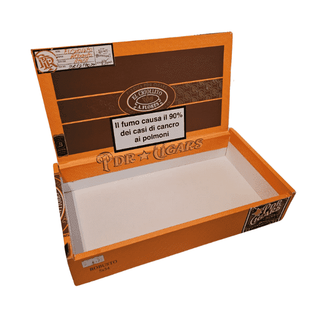 Scatola di sigari vuota "El Criollito" per creare Cigar Box Guitars personalizzate e originali. Disponibile su Matteacci's per esplorare nuove dimensioni musicali con un tocco di autenticità e stile.