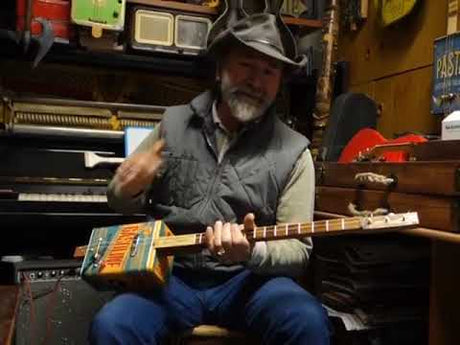 Matteacci's Service Repair blu 3tpv cigar box guitar