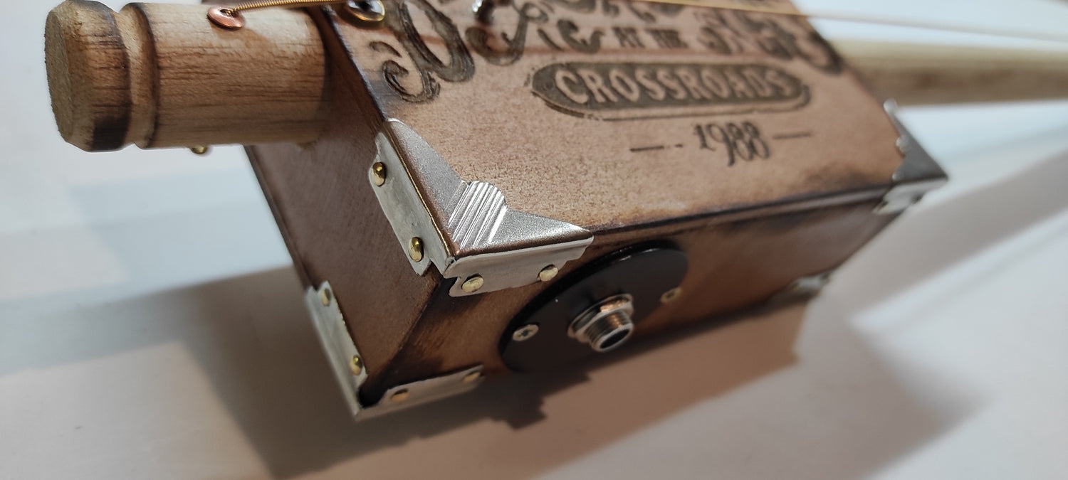 Questo strumento è stato realizzato artigianalmente da Robert Matteacci. Ogni dettaglio è attentamente rifinito per preservare l'autenticità degli strumenti blues tradizionali e artigianali. Ogni strumento è unico e potrebbe presentare migliorie nel tempo.