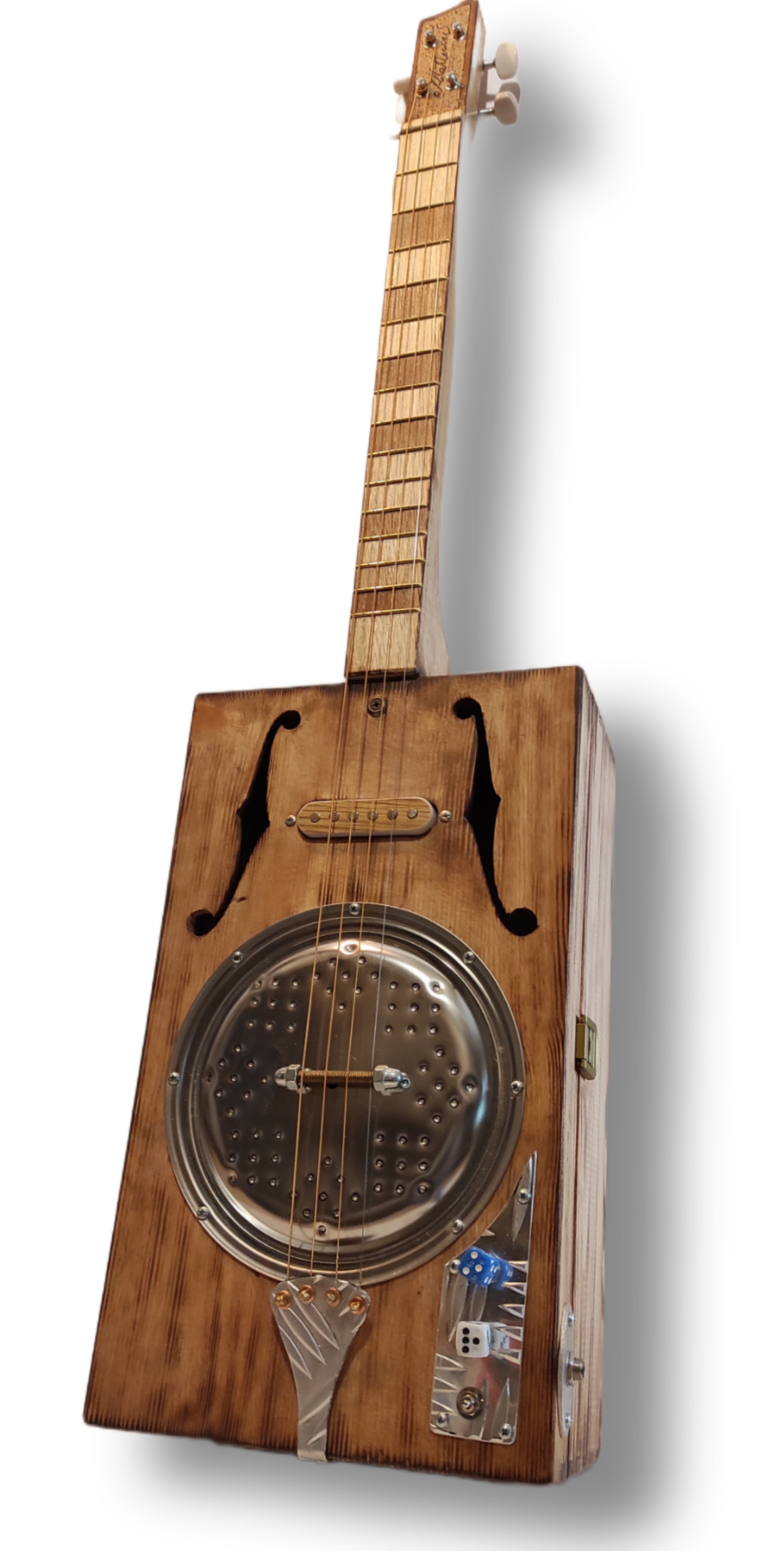 Questo strumento è stato realizzato artigianalmente da Robert Matteacci. Ogni dettaglio è attentamente rifinito per preservare l'autenticità degli strumenti blues tradizionali e artigianali. Ogni strumento è unico e potrebbe presentare migliorie nel tempo.