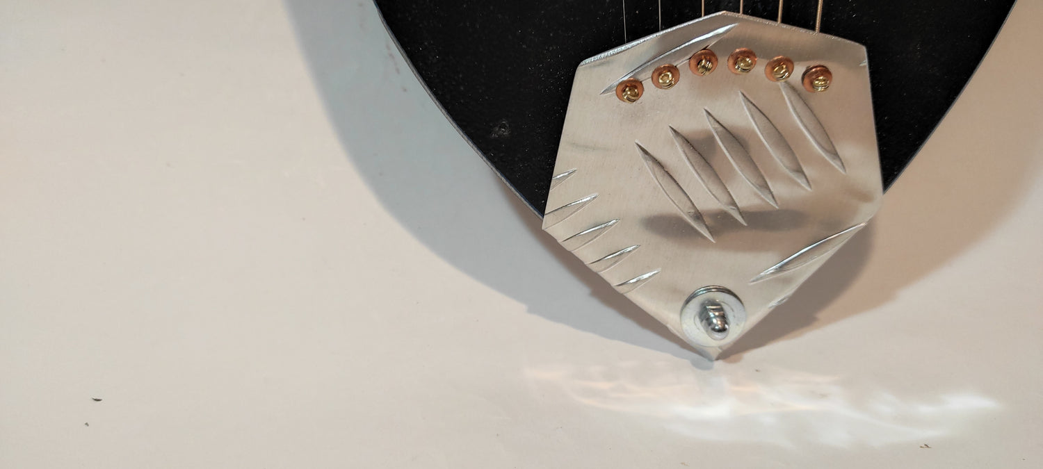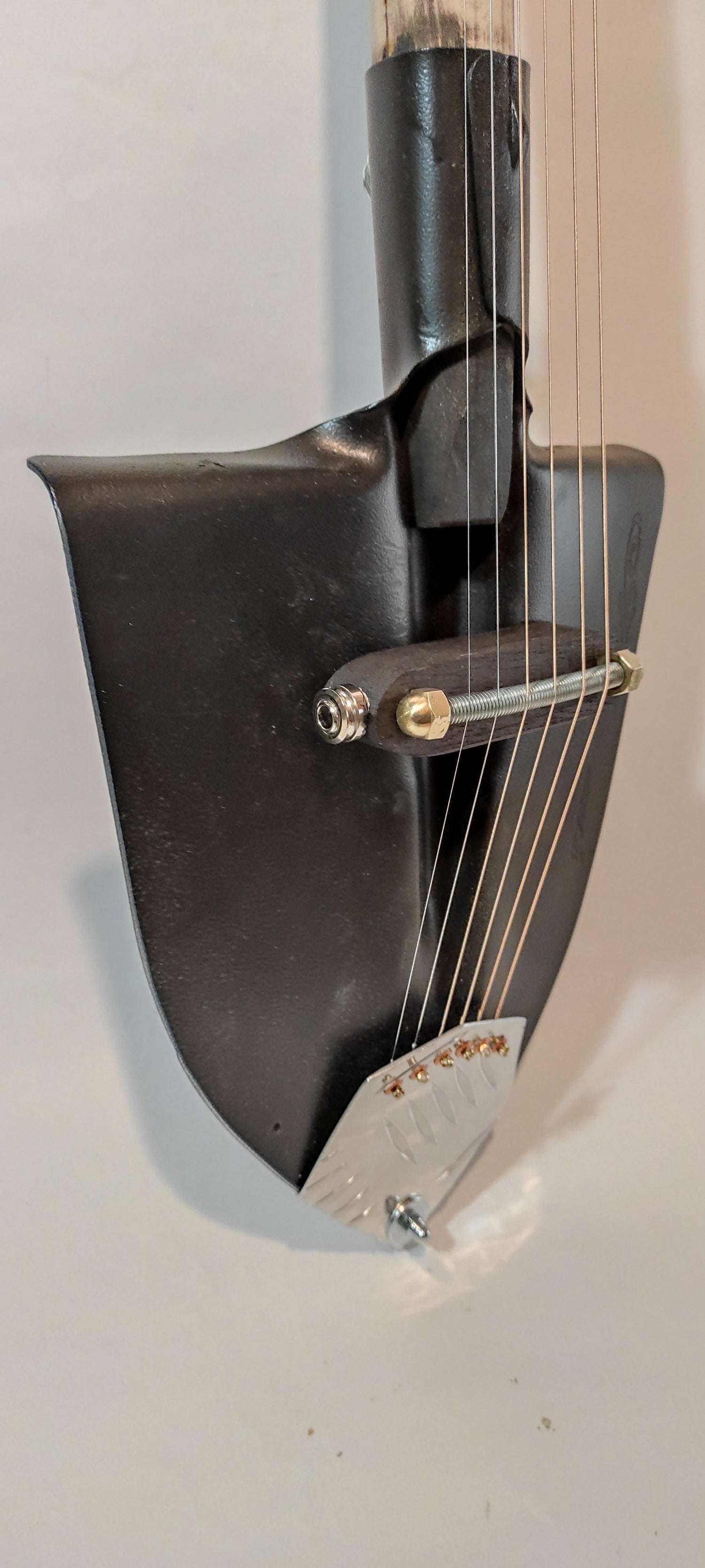 The sound is amplified with a piezoelectric pickup placed under the bridge.
