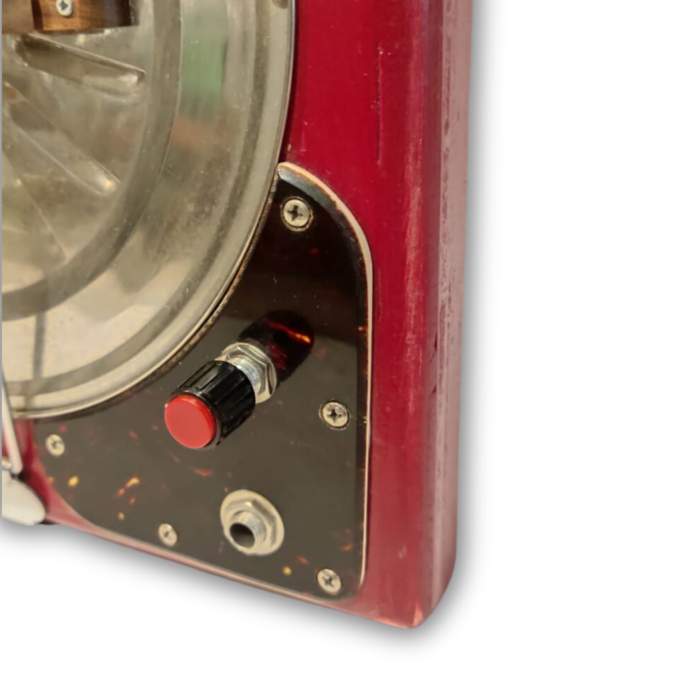 Scopri la Cigar Box Guitar "La Rossa", un autentico pezzo da collezione del 2013. Caratterizzata da un manico vintage in acero e una tastiera in palissandro, questa chitarra unica vanta un corpo cavo in abete e un risonatore in acciaio che conferiscono un suono distintivo e ricco. Equipaggiata con un pickup humbucker e un controllo volume, "La Rossa" combina estetica classica con prestazioni moderne, ideale per musicisti che cercano un'esperienza sonora e visiva unica nel suo genere
