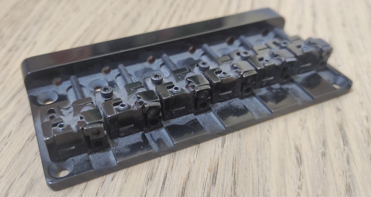 Ponte in ottone massiccio per basso elettrico a 6 corde.