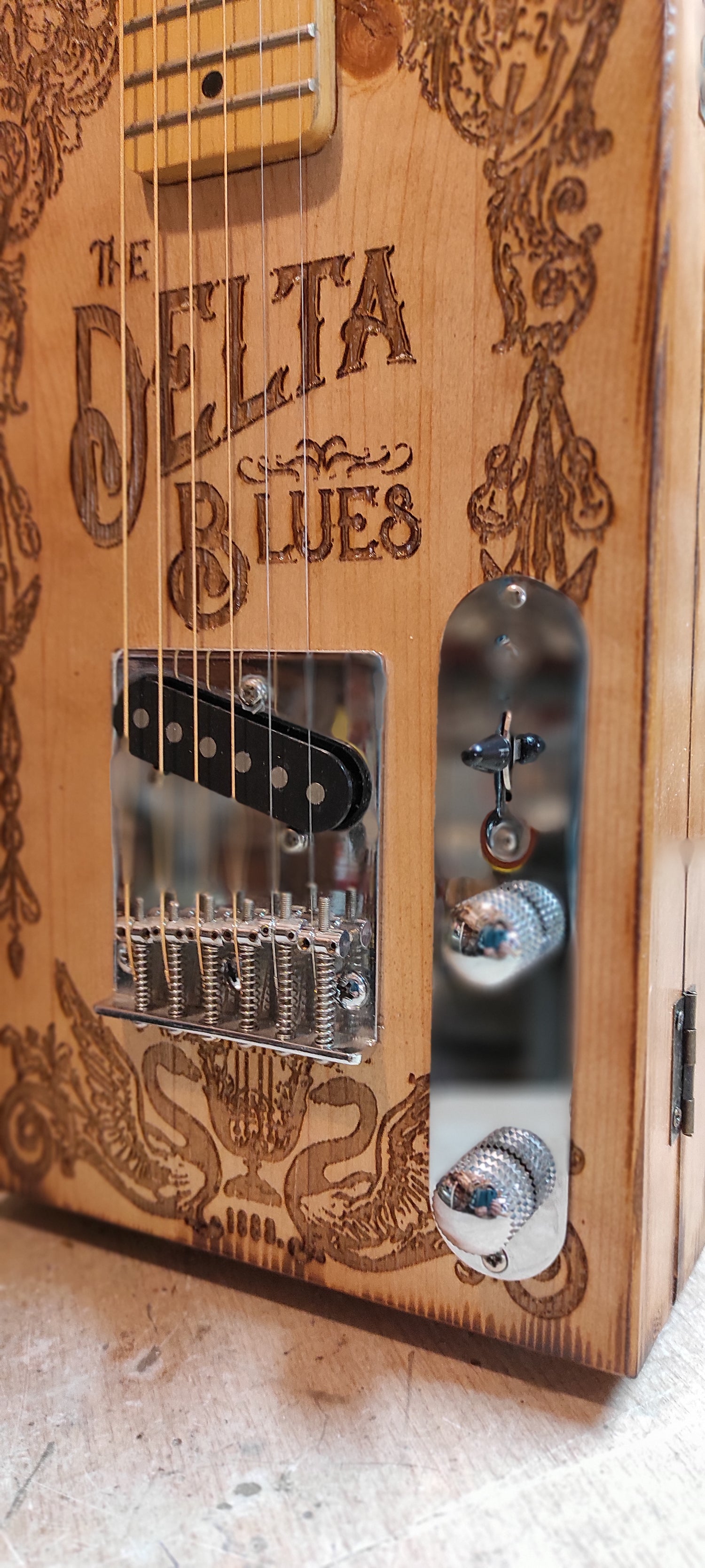 Questo strumento è stato realizzato artigianalmente da Robert Matteacci. Ogni dettaglio è attentamente rifinito per preservare l'autenticità degli strumenti blues tradizionali e artigianali. Ogni strumento è unico e potrebbe presentare migliorie nel tempo.