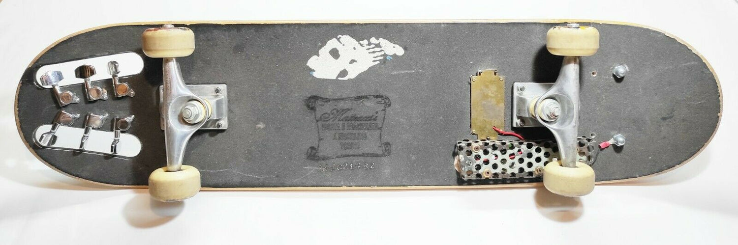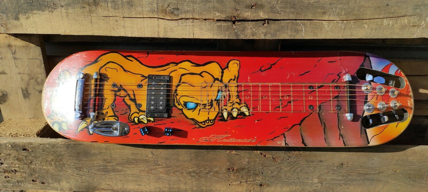 È una lap steel Guitar che ho ricavato da un bellissimo skateboard.